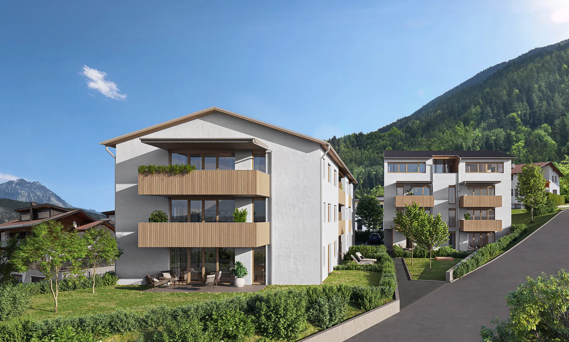 Während sich in der Nachbarschaft gleich mehrere geschichtsträchtige und denkmalgeschützte Häuser befinden, erfüllt das Projekt Schöneck modernste technische Ansprüche. Alle 18 Einheiten der auf zwei Gebäude aufgegliederten Wohnanlage werden über eine hocheffiziente Wärmepumpe in Kombination mit einer Photovoltaikanlage nachhaltig mit Energie versorgt. Eine ausgezeichnete Wärmedämmung und ein gut abgestimmtes Zusammenspiel aus verputzten Fassaden und Holzelementen erzielen neben einem schönen optischen Gesamtbild auch viel Wohnkomfort.